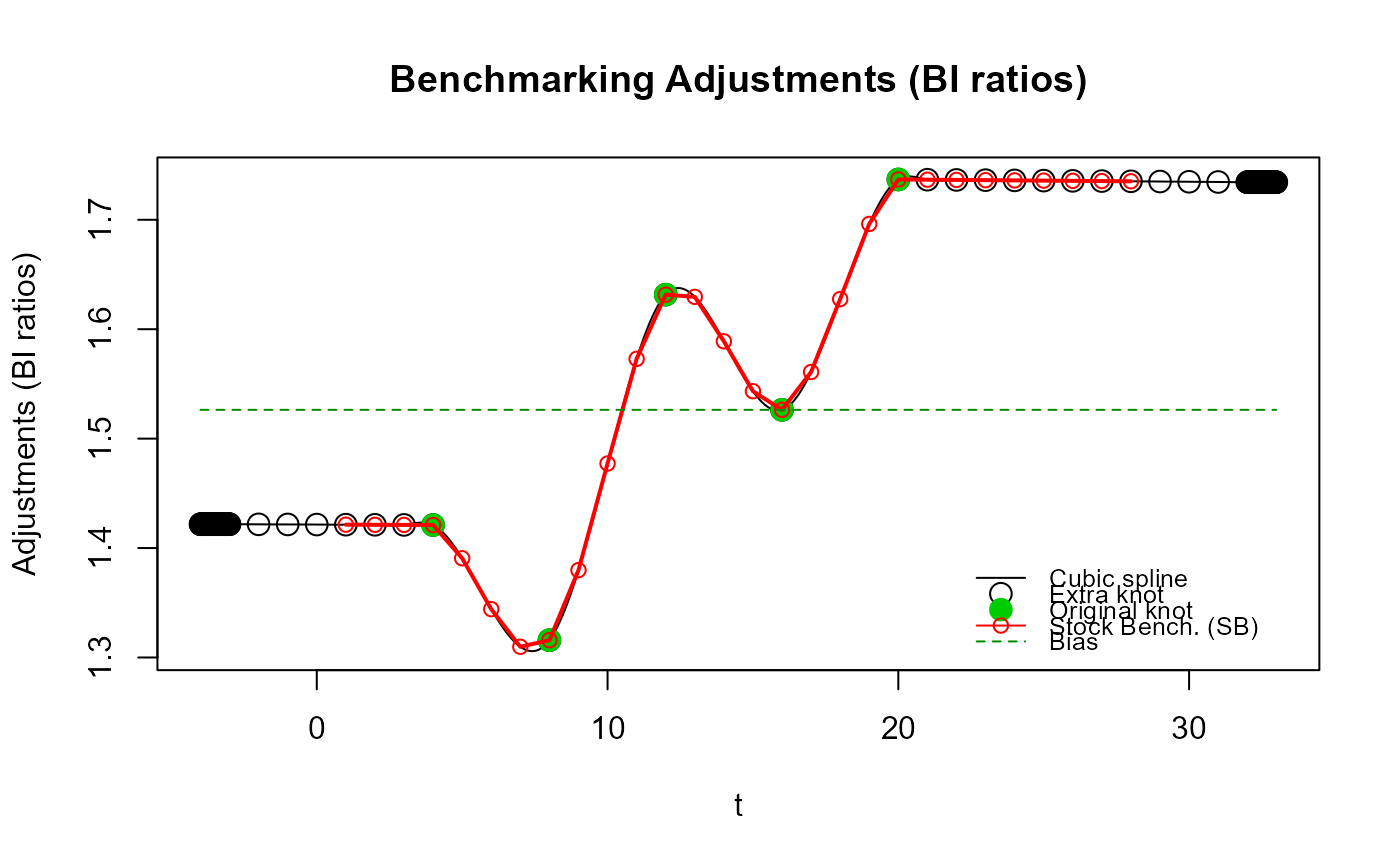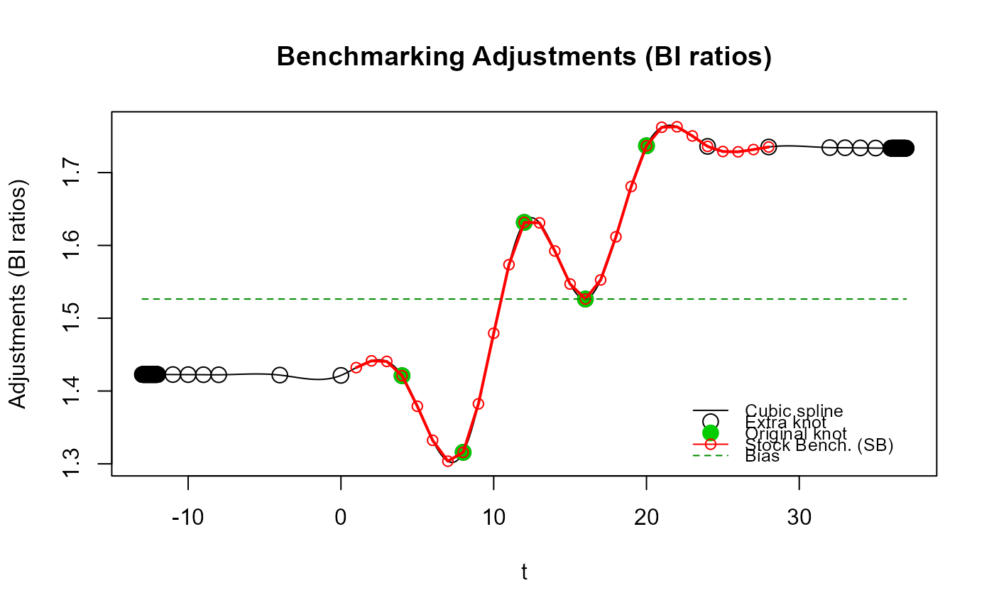# benchmark compared to only 3 for quarterly data, i.e., a less constrained spline)